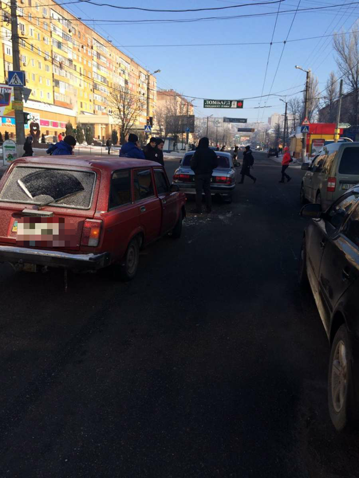 Вже о 9:15 по вулиці Вокзальній водій ВАЗу не дотримався безпечної дистанції та “наздогнав” Волгу.
