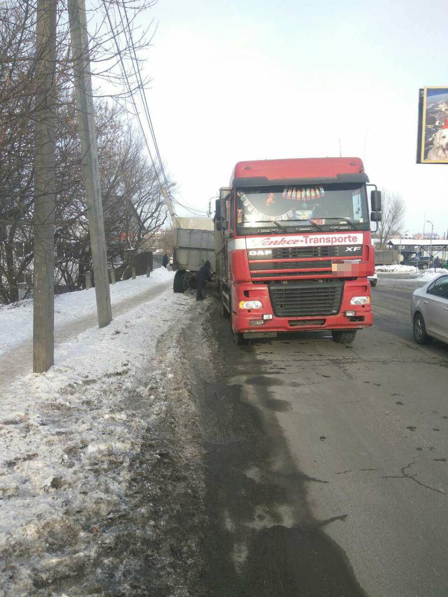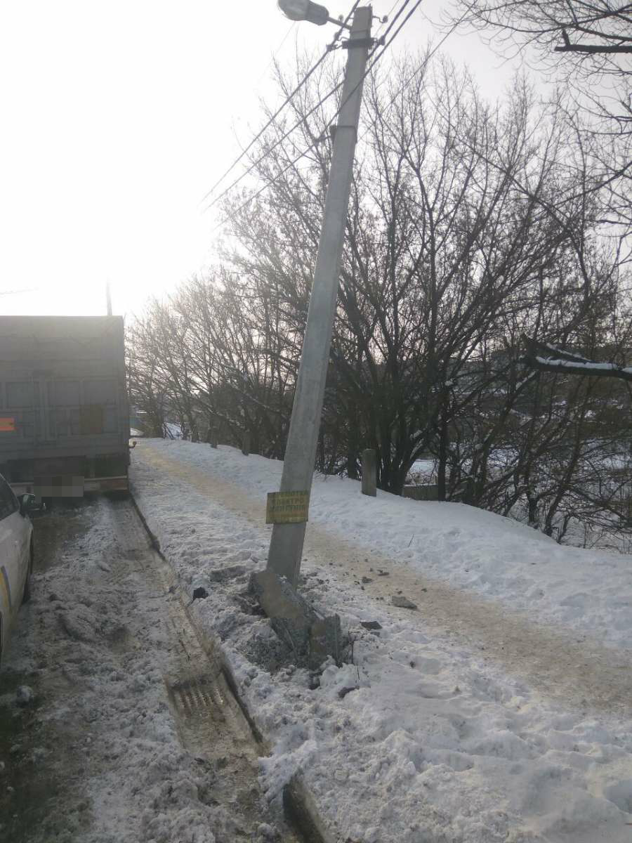 А 27 січня у Кропивницькому знову постраждала електроопора. Цього разу її зніс причеп, який відірвався від вантажівки.