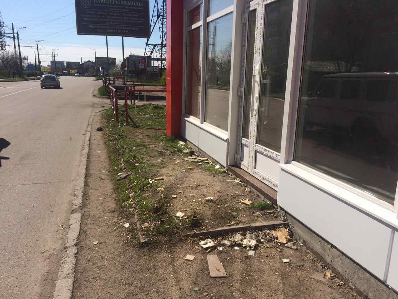 Частину тротуарного паркану, яка знаходилась перед фасадом МАФу зрізали і приварили, обігнувши тимчасову споруду.