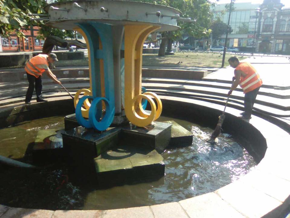 Сьогодні комунальники також закінчують вкладання щебню біля фонтану зі сторони вул. Чміленка і починають облаштовувати аналогічну композицію біля онтану зі сторони вул. Дворцової.