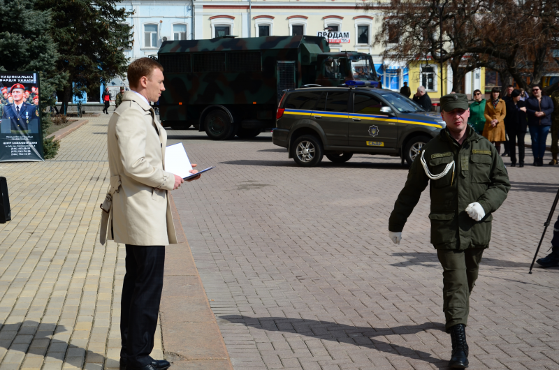 Согодні, 23 березня, біля приміщення Кіровоградської облдержадміністрації на площі Героїв Майдану відбулися урочистості з нагоди 3-ї річниці з дня створення Національної гвардії України і показ військової техніки формування.
