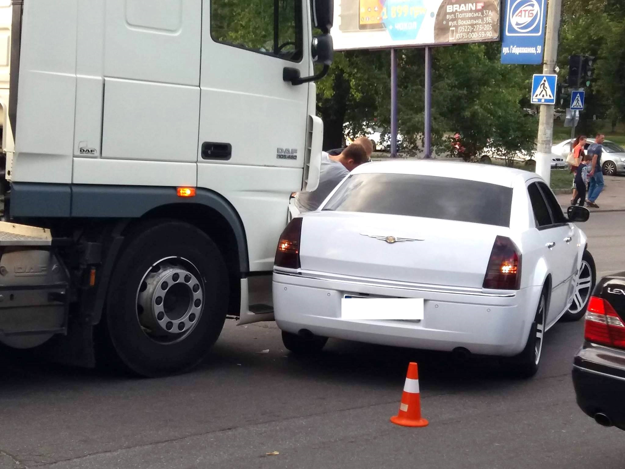 Того ж 11 вересня, близько 15:00 по вулиці Вокзальній у Кропивницькому не розминулися Chrysler та вантажівка. 19-річний водій Chrysler 300С рухався по вул. Вокзальній в сторону залізничного вокзалу, не впевнився у безпечності маневру, коли намагався перелаштуватися у іншу смугу та зіштовхнувся з вантажівкою DAF.