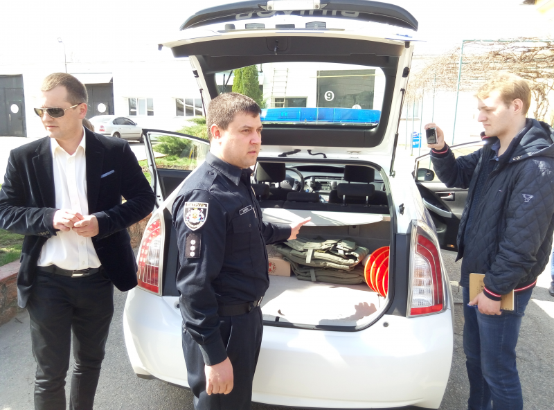 Антон Цюцюра також показав, чим укомплектований черговий автомобіль поліції. Кожен екіпаж має в автомобілі службовий планшетний ПК, на який копи отримують свої завдання та перевіряють по базам особу чи автомобіль і термінал для сплати штрафу на місці.