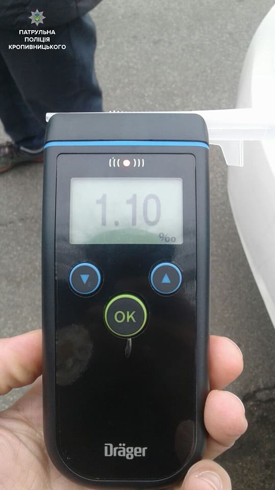 Результат алкотестера -1,01 проміле алкоголю в крові, що в 5 разів перевищує допустиму норму.