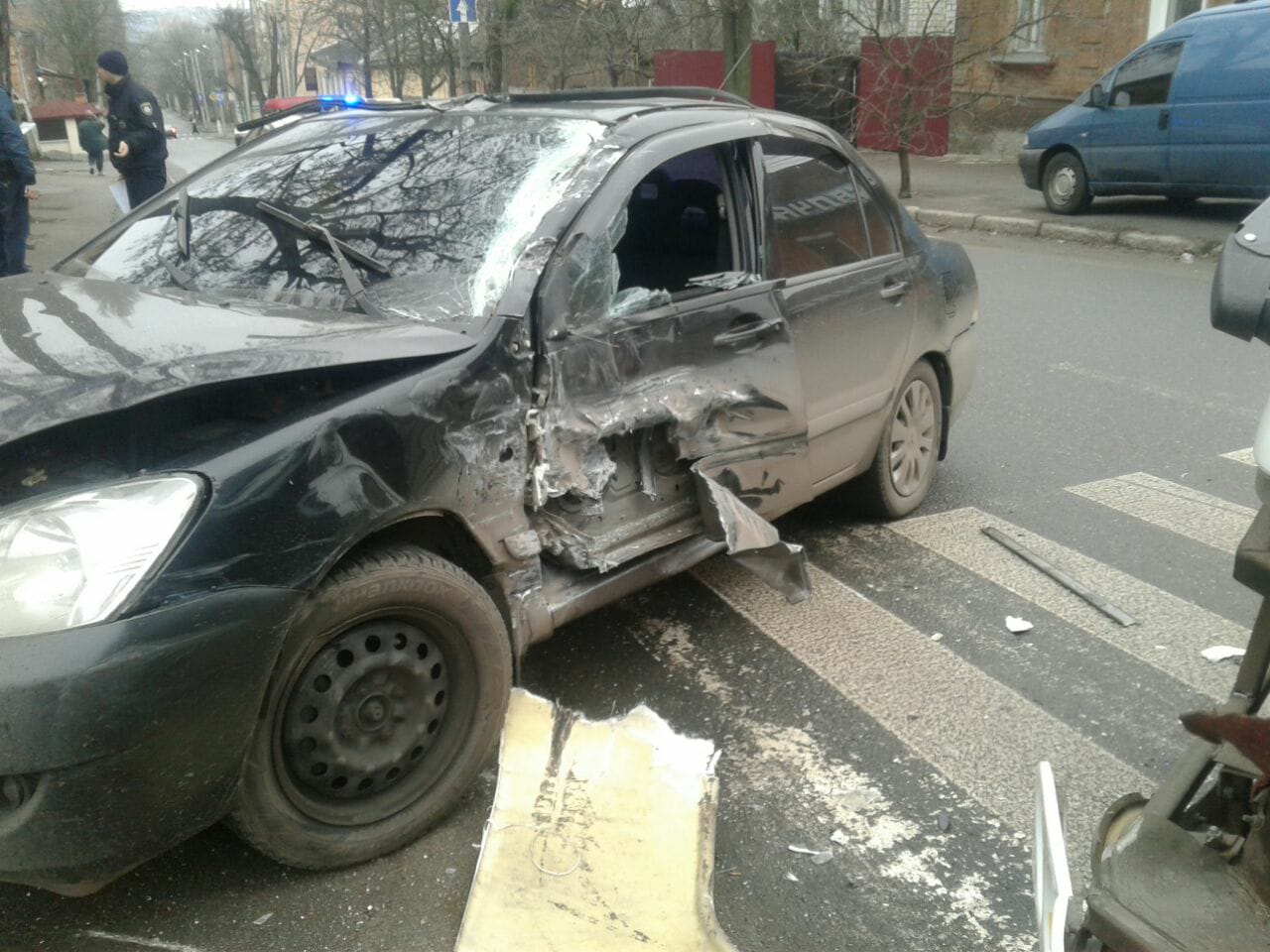 А 4 січня, близько 9 ранку на розі вулиць Гоголя та Кропивницького сталася потрійна ДТП за участі автомобілів “Volkswagen”, “Subaru” та “Daewoo”. Volkswagen врізався у будинок, а водія Subaru доправили в лікарню.