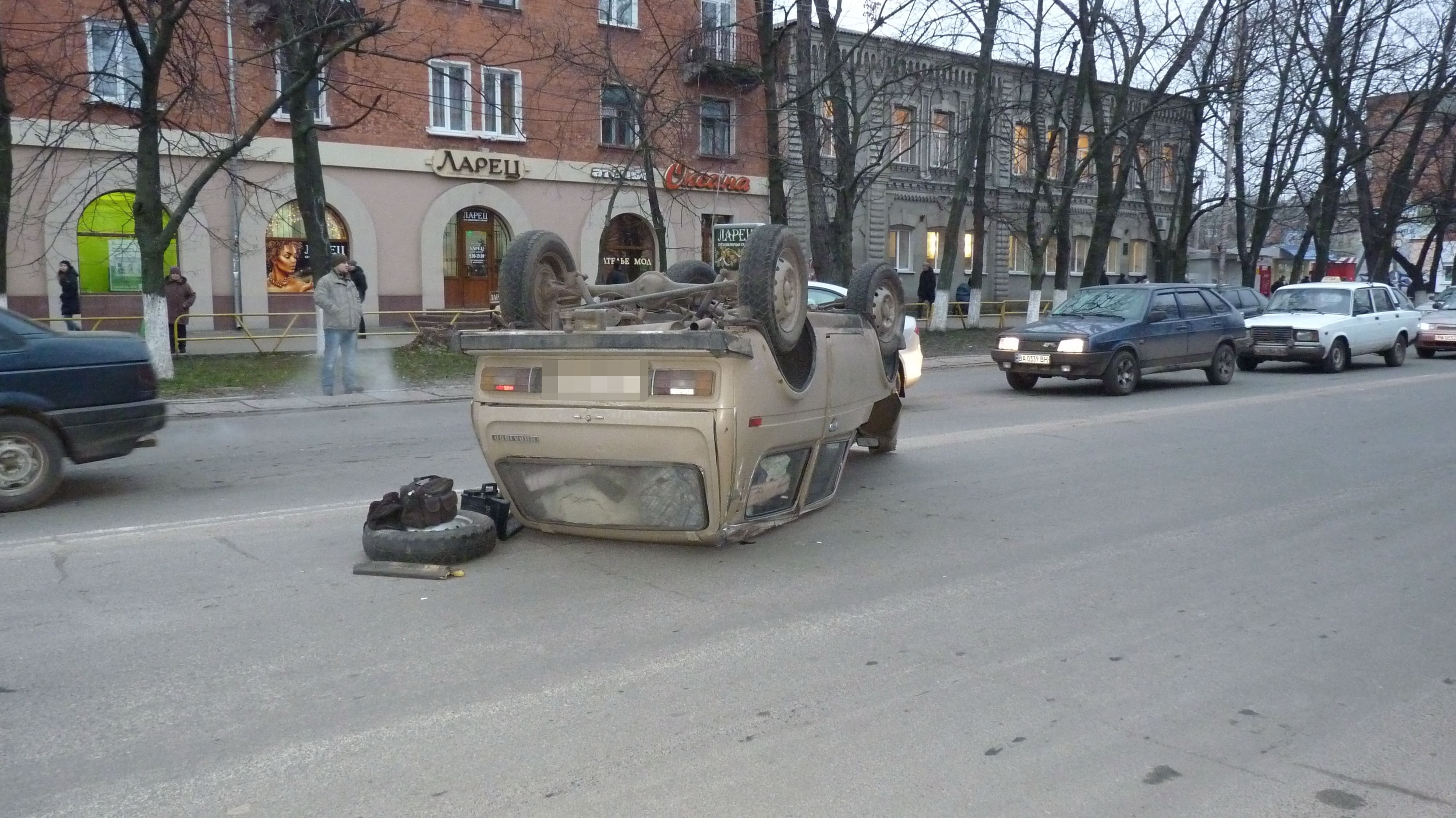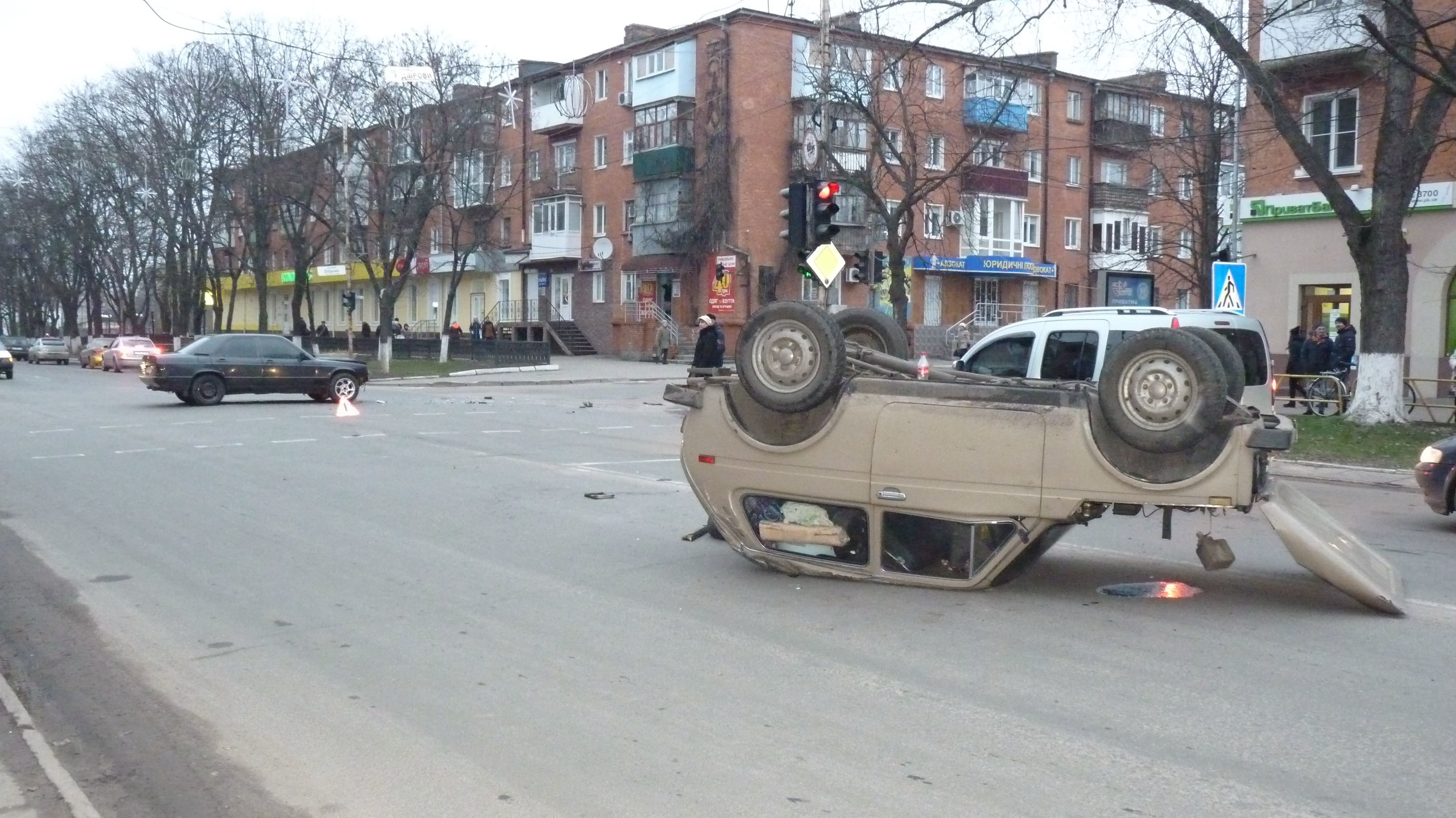 Перша аварія в нашій добірці трапилася 2 січня в Олександрії. Тоді під час ДТП автомобіль “Нива” перекинувся на дах.