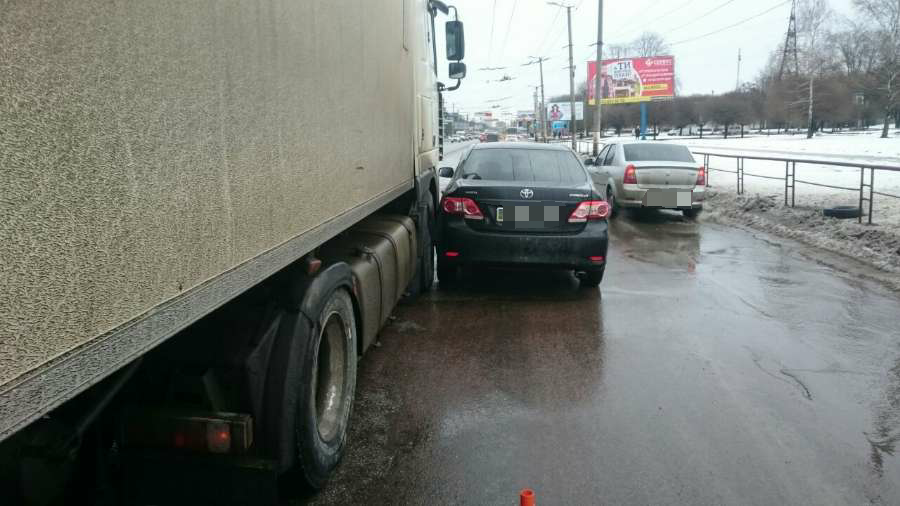 Також вранці, але вже 30 січня, на проспекті Університетському не розминулися Toyota та вантажівка “DAF”.